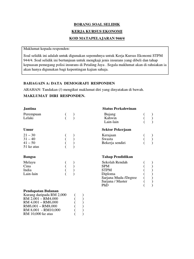 Pdf Borang Kaji Selidik Mengenai Insurans Pdfslide Net