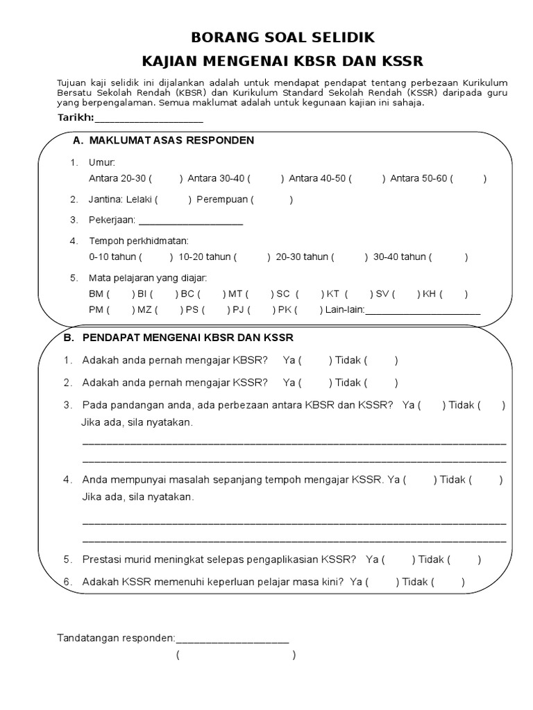 Doc Borang Soal Selidik Sekufu Trah Kecheq Academia Edu